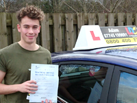 Harry R Passed 1st time Adam was very good from the start at helping to improve my driving and was very helpful at explaining how to do things very clearly. Also the workbook helped massively as it allowed me to learn between lessons. The system was very good as well as from the first lesson you are encouraged to find solutions so that you can become independent. I had a home visit from Adam to explain things and then had my first lesson on my 17th birthday. I did a semi-intensive course of 30 hours in 8 weeks and passed my test at the first attempt.