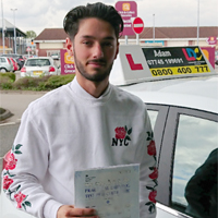 Hayden C Passed First Time Adam was an excellent instructor. He was very good at showing me how to drive and helped me fully along the way. He always answered any questions I had to ask. When the test centre cancelled my original test at short notice Adam found me another test so that I didn't have to wait 3 months.
